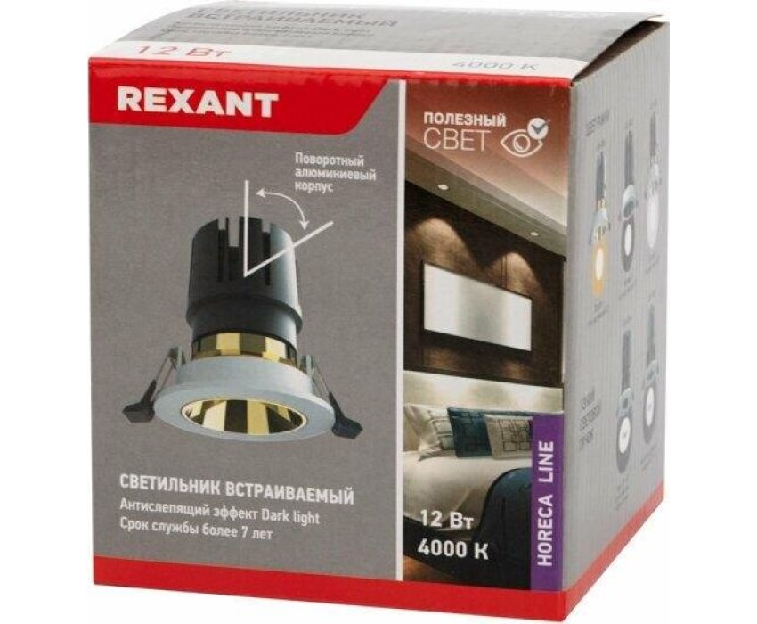 Встраиваемый светодиодный светильник REXANT Horeca Dark Light направленного света с поворотной конструкцией позволяет менять угол освещения в зависимости от ваших потребностей.