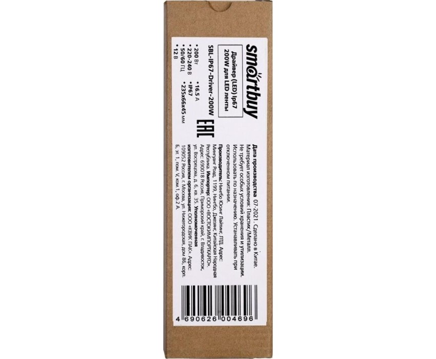 драйвер SMARTBUY (SBL-IP67-Driver-200W) Драйвер нейтральный 200W