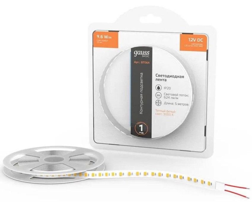 Светодиодная лента GAUSS Светодиодная лента Basic, 48Вт, 5м [bt064]