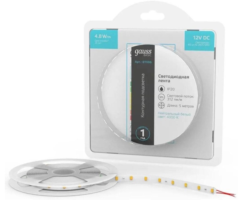 Светодиодная лента GAUSS Светодиодная лента Basic, 24Вт, 5м [bt006]