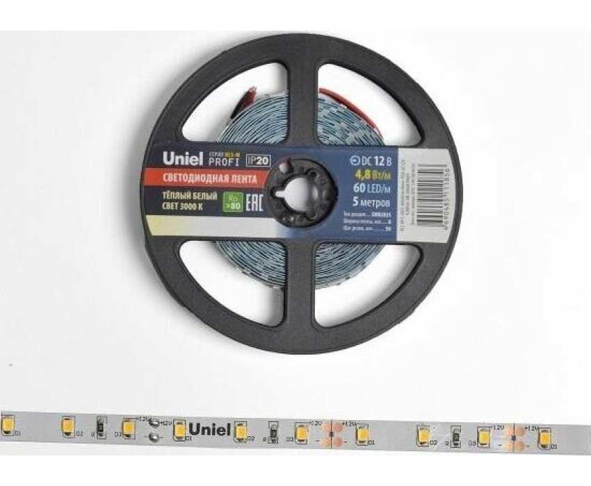 Светодиодная лента UNIEL (UL-00007997) ULS-M11-2835-60LED/m-8mm-IP20-DC12V-4,8W/m-4M-4000K PROFI катушка в герметичной упаковке