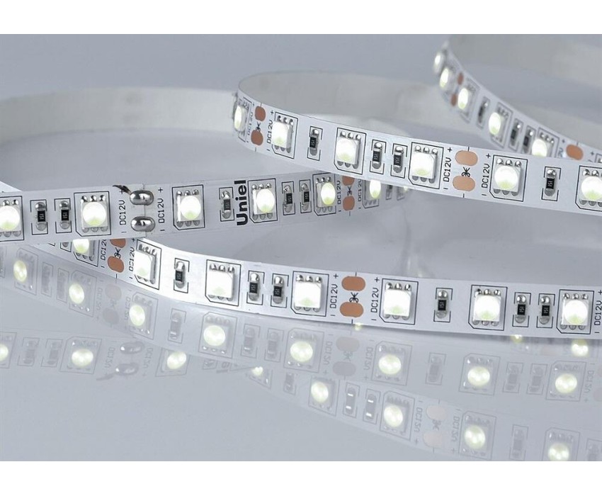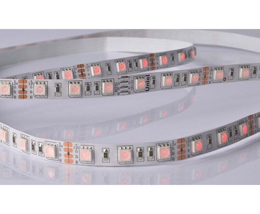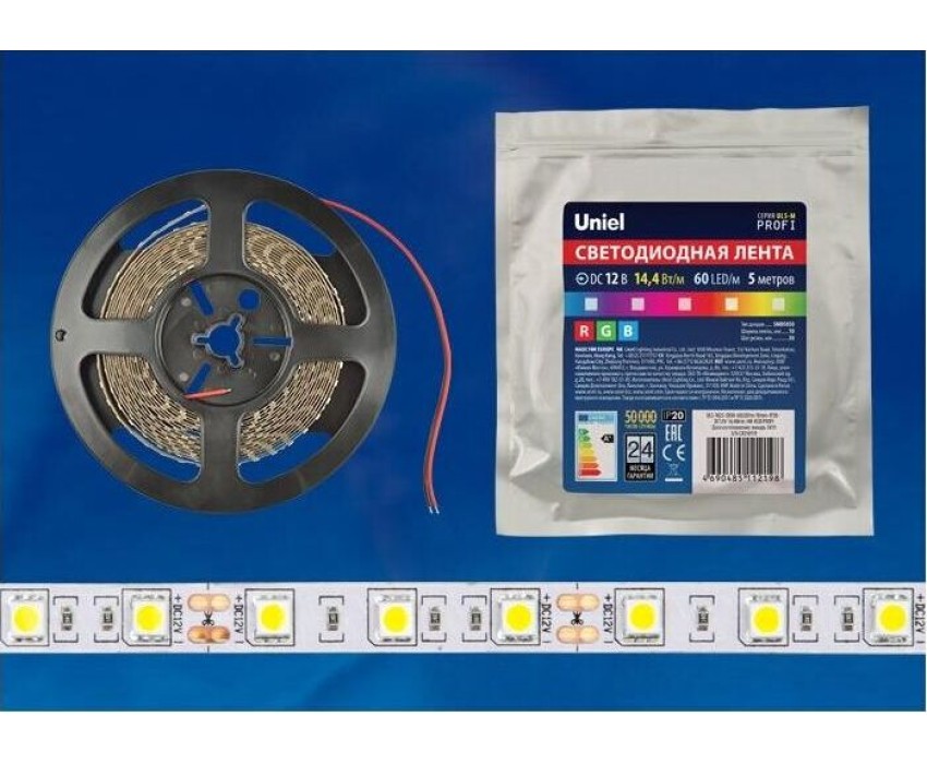 Светодиодная лента UNIEL (UL-00004375) ULS-M25-5050-60LED/m-10mm-IP20-DC12V-14,4W/m-5M-RGB PROFI катушка в герметичной упаковке