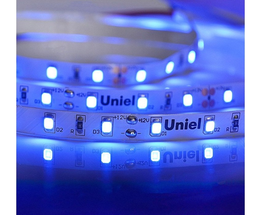 Светодиодная лента UNIEL (UL-00004359) ULS-M11-2835-60LED/m-8mm-IP20-DC12V-4,8W/m-5M-BLUE PROFI катушка в герметичной упаковке