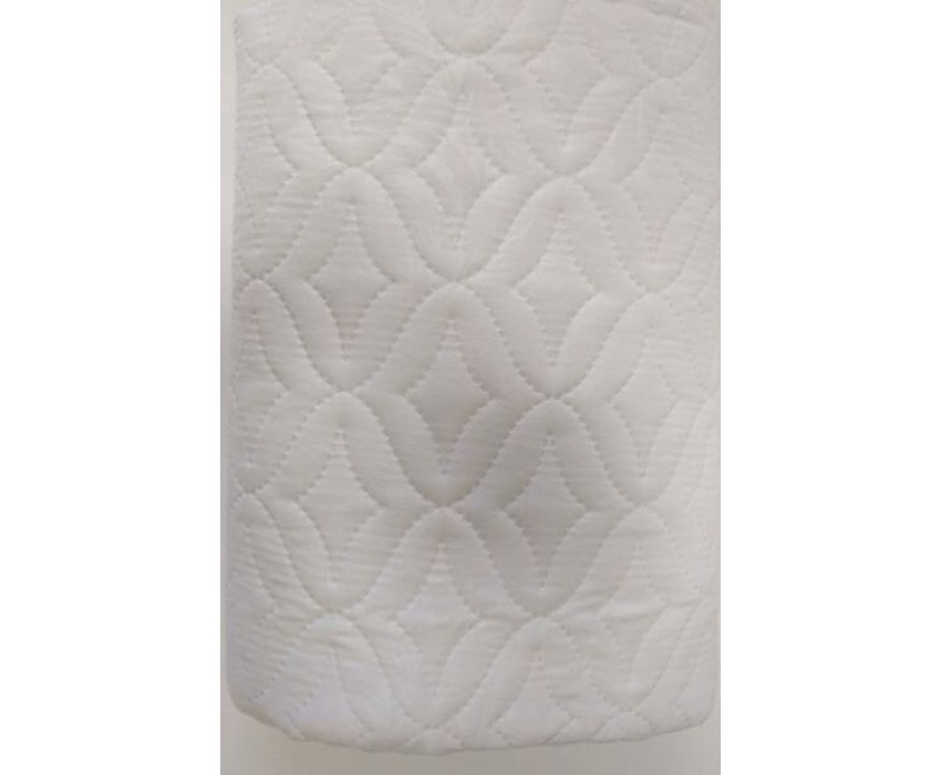 140*200, на резинке, основная ткань-полотно стеганное двустороннее (микрофибра (пл.75+/-5 гр/кв.м, 100% ПЭ, вложение-синтепон, на 4-х резинках по углам упаковка: ПВХ – тубус , фирменный вкладыш). Пришивного борта нет, есть резинки по углам. Цвет белый