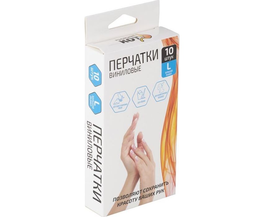 Перчатки хозяйственные РЫЖИЙ КОТ Перчатки виниловые, неопудренные, размер L, 10шт (008342)