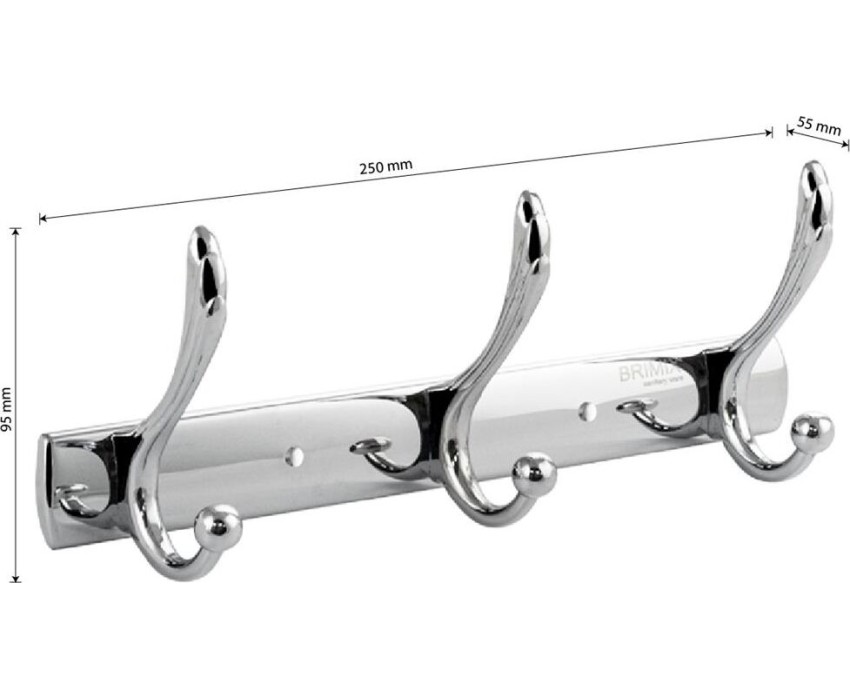 Вешалка - держатель для принадлежностей металлический, хромированный, с тремя крючками. Изготовлен из прочной нержавеющей стали марки SUS 304 с хромированным покрытием, которое придает безупречный стильный вид и долговечность. Хромированное покрытие очень стойко переносит истирания и обеспечивает зеркальный блеск изделия. На держателе с легкостью можно размещать вещи для сушки или вешать, как полотенца, так и одежду перед походом в душ. Идеально подойдет не только для ванной, но и для кухни, а также для дачи или гаража - при необходимости на держатель можно вешать любые предметы. Изделие крепится к стене с помощью дюбелей и саморезов (входят в комплект). Габаритные размеры: длина 250 мм, высота 95 мм, глубина 55 мм. Вес - 0,300 кг, объём - 0,00097 м3.