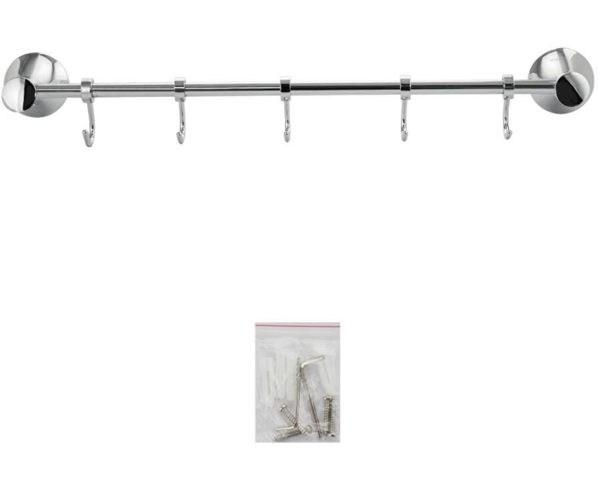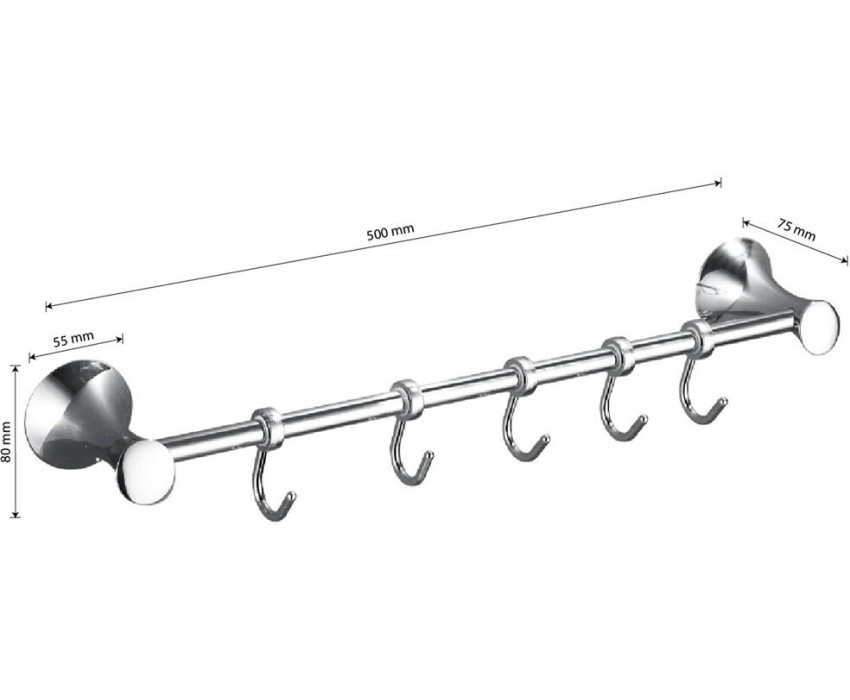 Держатель для полотенец металлический, хромированный, с пятью подвижными крючками. Материал изготовления — ЦАМ (цинк-алюминий-медь) + нержавеющая сталь. Хромированное покрытие очень стойко переносит истирания и обеспечивает зеркальный блеск изделия. На держателе с легкостью можно размещать вещи для сушки или вешать, как полотенца, так и одежду перед походом в душ. Идеально подойдет не только для ванной, но и для кухни, а также для дачи или гаража - при необходимости на держатель можно вешать любые предметы. Изделие крепится к стене с помощью дюбелей и саморезов (входят в комплект). Размеры: длина 500 мм, глубина 75 мм, высота 80 мм, основание 55 мм. Вес - 0,800 кг, объём - 0,00320 м3.