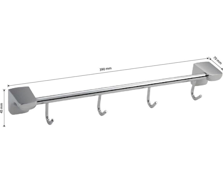 Держатель для полотенец металлический, хромированный, с четырьмя крючками. Материал изготовления — ЦАМ (цинк-алюминий-медь) + нержавеющая сталь. Хромированное покрытие очень стойко переносит истирания и обеспечивает зеркальный блеск изделия. На держателе с легкостью можно размещать вещи для сушки или вешать, как полотенца, так и одежду перед походом в душ. Идеально подойдет не только для ванной, но и для кухни, а также для дачи или гаража - при необходимости на держатель можно вешать любые предметы. Изделие крепится к стене с помощью дюбелей и саморезов (входят в комплект). Габаритные размеры: длина 390 мм, высота 45 мм, глубина 70 мм. Вес - 0,530 кг, объём - 0,00260 м3.