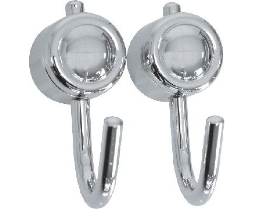 Крючки материал: хромированный металл, пластик упаковка: 2 шт/уп крепление: шуруп Упаковка: двойной блистер Крючки изготовлены из хромированной стали, которая надежно защищена от коррозии. Крючки идеально подойдут для размещения полотенец, халатов и другой текстильной продукции. Изделие крепится к стене с помощью шурупов (входят в комплект), которые закрываются декоративными круглыми пластиковыми вставками.0,148x0,097x0,045