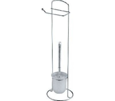 Стойка напольная с держателем для туал. бумаги и ершиком ELINE размер: 16,5*16,5*59см материал: хром.металл, пластик Упаковка: бирка (хэнгтаг) Стойка напольная для ванной комнаты изготовлена из высококачественной хромированной стали, устойчивой к проявлению элементов коррозии. Изделие состоит из держателя туалетной бумаги, ершика с ручкой, белой щеткой с жестким густым ворсом и подставки.