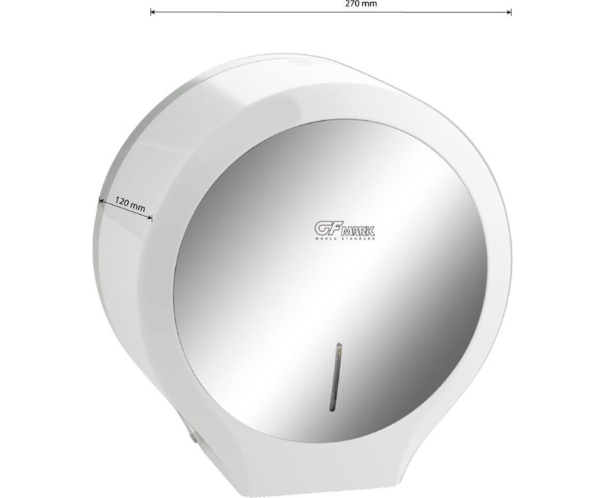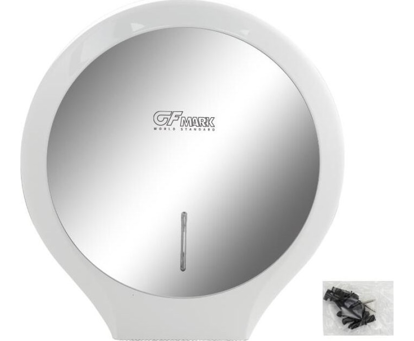 Аксессуары для ванной комнаты и туалета GFMARK 918 Диспенсер для туалетной бумаги-барабан ПРЕМИУМ, пластиковый, БЕЛЫЙ с ЗЕРКАЛОМ, с ключем