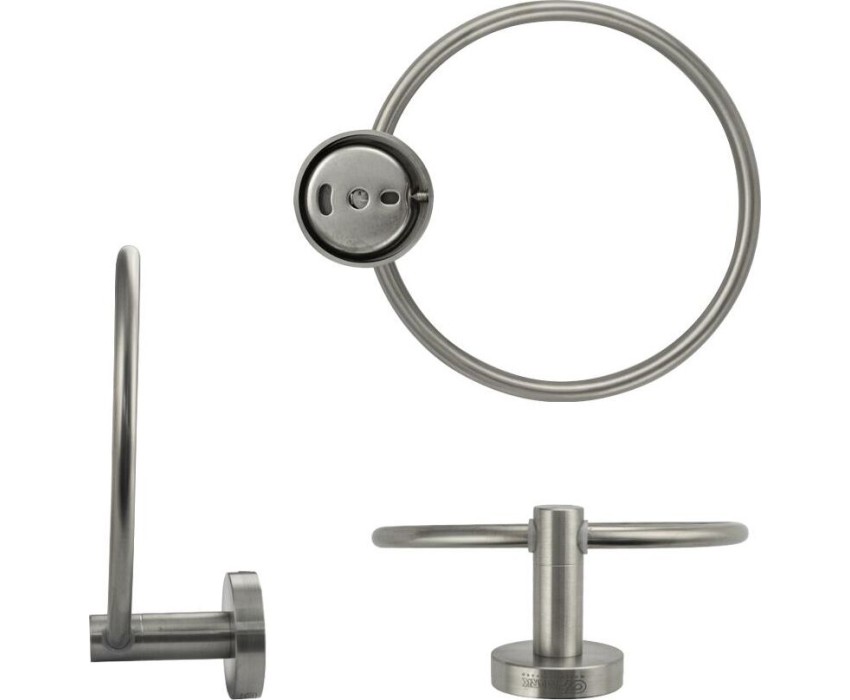 Держатель для полотенец металлический, в виде кольца. Изготовлен из прочной нержавеющей стали марки SUS 304 с матовым покрытием, которое придает безупречный стильный вид и долговечность. На держателе с легкостью можно размещать любые полотенца для сушки. Идеально подойдет не только для ванной, но и для кухни, а также для дачи или гаража - при необходимости на держатель можно вешать любые предметы. Изделие крепится к стене с помощью дюбелей и саморезов (входят в комплект). Габаритные размеры: d = 160 мм, глубина 65 мм, основание 55 мм. Вес - 0,300 кг, объём - 0,00248 м3.