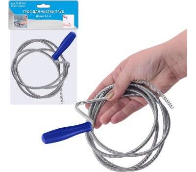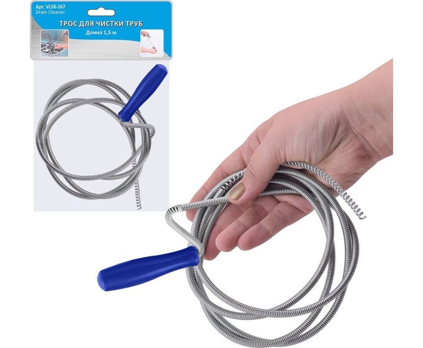 Трос для чистки труб длина 1.5м VL58-167 Материал: Металл (Сталь), Пластмасса (РР) Длина 1,5м, диаметр 5 мм.