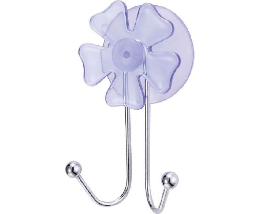 Крючок двойной "Цветок" Размер: 9,7*3,5 см Материал: хромированный металл, пластик Крепление присоска Упаковка: полиэт. пакет и бирка