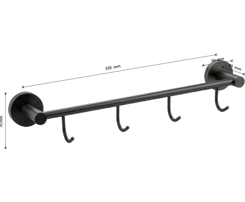 Держатель для полотенец металлический, с четырьмя крючками. Материал изготовления — нержавеющая сталь, Графитовое матовое покрытие очень стойко переносит истирания и обеспечивает безупречный стильный вид изделия и долговечность. На держателе с легкостью можно размещать вещи для сушки или вешать, как полотенца, так и одежду перед походом в душ. Идеально подойдет не только для ванной, но и для кухни, а также для дачи или гаража — при необходимости на держатель можно вешать любые предметы. Изделие крепится к стене с помощью дюбелей и саморезов (входят в комплект). Размеры: длина 350 мм, глубина 90 мм, высота 70 мм, диаметр посадочного седла 50 мм. Вес — 0,425 кг, объём — 0,00300 м3