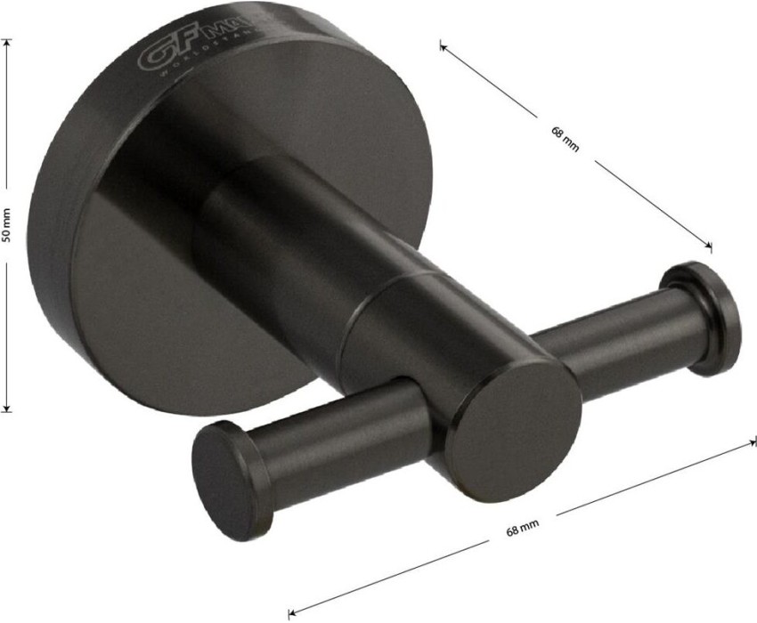 Крючок двойной для полотенец металлический. Материал изготовления — нержавеющая сталь. Имеет специальное графитовое, матовое покрытие, которое защищает изделие от влаги и придает ему безупречный стильный вид и долговечность. На крючке с легкостью можно размещать вещи для сушки или вешать, как полотенца, так и одежду перед походом в душ. Идеально подойдет не только для ванной, но и для кухни, а также для дачи или гаража — при необходимости на держатель можно вешать любые предметы. Изделие крепится к стене с помощью дюбелей и саморезов (входят в комплект). Размеры: глубиена 70 мм, диаметр посадочного седла 50 мм. Вес — 0,152 кг, объём — 0,00050 м3