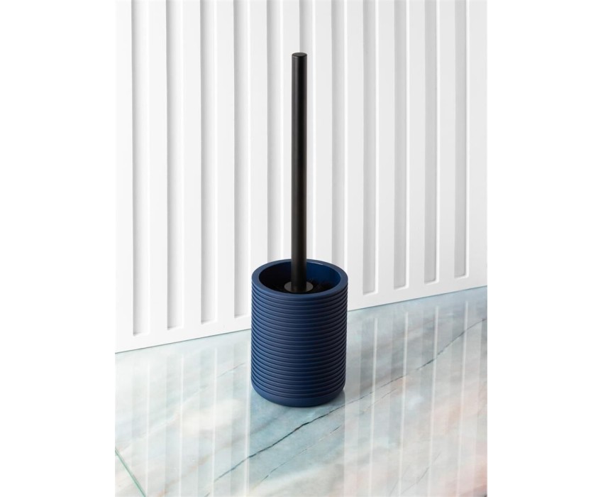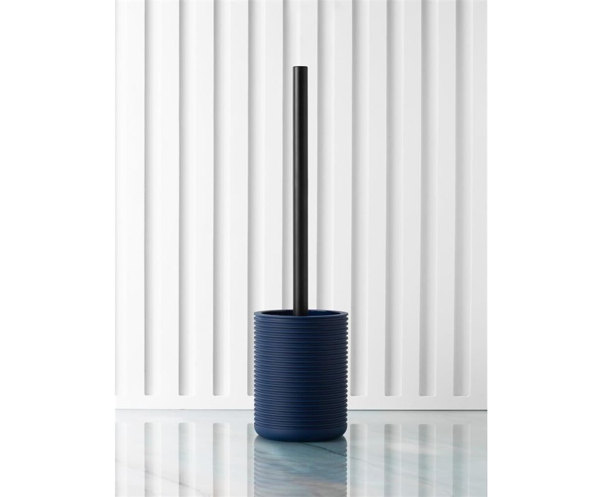 Туалетный ершик с подставкой Съёмная щетка Материал: ABS-пластик прорезиненный Размер: высота ершика- 35 см; подставка- 13 х d9,5 см Цвет: темно-синий, черный Цвет щетины: черный