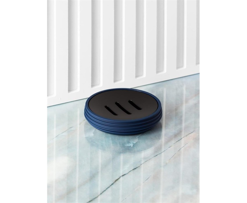 Мыльница Съемное дно Материал: ABS-пластик прорезиненный Размер: 2 x d11 см Цвет: темно-синий, черный
