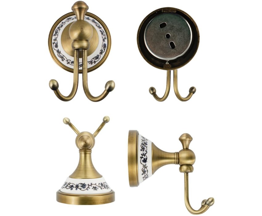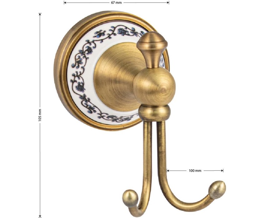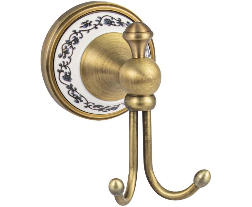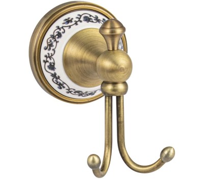 Аксессуары для ванной комнаты и туалета BRIMIX 94114 Крючок двойной на основании, цвет БРОНЗА, с керамической вставкой с орнаментом