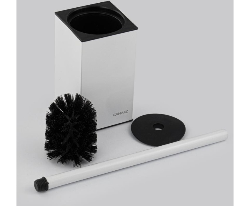 Аксессуары для ванной комнаты и туалета САНАКС 80182 Ерш для унитаза квадратный, напольный, АНТИВАНДАЛЬНЫЙ, из нержавеющей стали марки SUS 304, цвет БЕЛЫЙ