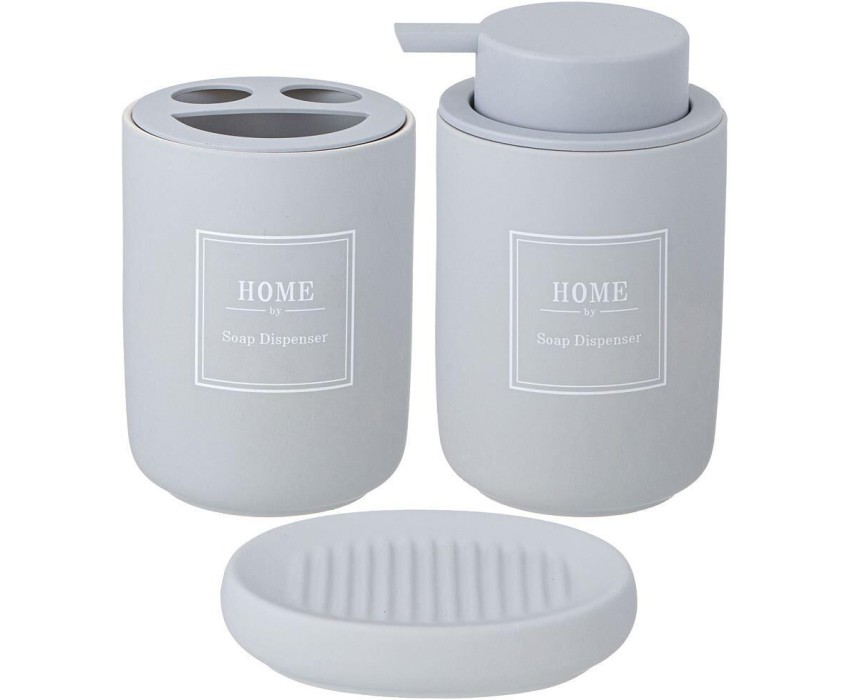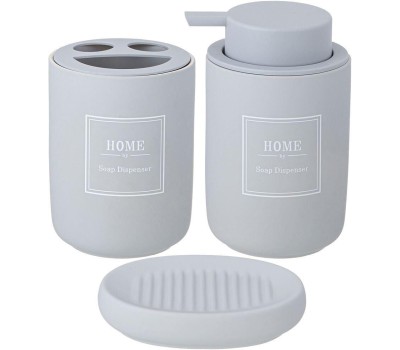 Секрет удачного оформления любого интерьера — яркие аксессуары Набор предметов для ванной не только внесёт изюминку в интерьер, но и придаст ему стильность, уют и ощущение завершенности. А так же значительно облегчит хранение некоторых принадлежностей. В комплект входят: дозатор для жидкого мыла, стакан для зубных щеток и мыльница.