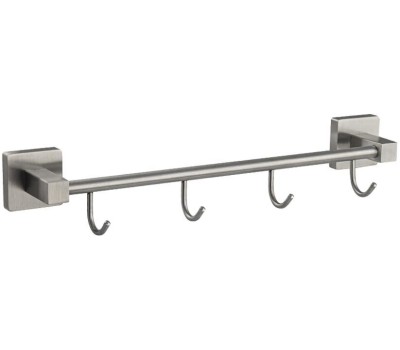 Аксессуары для ванной комнаты GFMARK 87205 Вешалка с четырьмя крючками прямая, из нержавеющей стали, с квадратным основанием, цвет САТИН