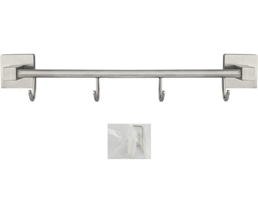 Держатель для полотенец металлический с четырьмя крючками. Изготовлен из прочной нержавеющей стали марки SUS 304 с матовым покрытием, которое придает безупречный стильный вид и долговечность. На держателе с легкостью можно размещать вещи для сушки или вешать, как полотенца, так и одежду перед походом в душ. Идеально подойдет не только для ванной, но и для кухни, а также для дачи или гаража - при необходимости на держатель можно вешать любые предметы. Изделие крепится к стене с помощью дюбелей и саморезов (входят в комплект). Габаритные размеры: длина 385 мм, высота 65 мм, глубина 80 мм, посадочное седло 50*50 мм. Вес - 0.5 кг, объём - 0.00287 м3.