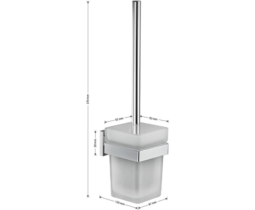 Ёршик со стеклянной матовой колбой, настенный — необходимый аксессуар любой туалетной комнаты. Приспособление обеспечит порядок и правильное хранение гигиенических принадлежностей. Изделие выполнено из стекла и металла с хромированным покрытием. Жесткая щетина ерша гарантирует отличный результат очистки санузлов. Такое сочетание материалов делает конструкцию прочной и долговечной. Держатель колбы легко и удобно крепится к стене при помощи фурнитуры входящей в комплект поставки. Материал изготовления ЦАМ с хромированным покрытием, которое придает безупречный стильный вид и долговечность. Габаритные размеры: высота 370 мм, высота ручки 365 мм, высота колбы 135 мм, основание 50*50 мм. Вес - 1,05 кг, объём - 0,00421 м3.