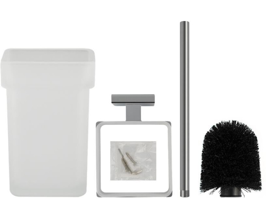 Аксессуары для ванной комнаты GFMARK 84162 Ёрш для унитаза, стеклянный, с креплением к стене, на квадратном основаниии, цвет ХРОМ