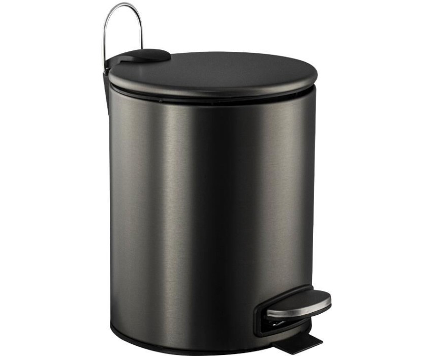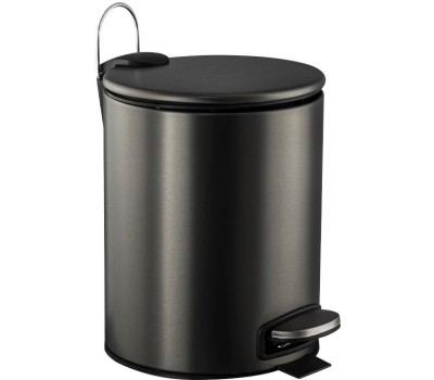 Аксессуары для ванной комнаты САНАКС 10505 Ведро из нержавеющей стали, с педалью, круглое, 5 литров, плоская крышка микролифт, цвет ГРАФИТ