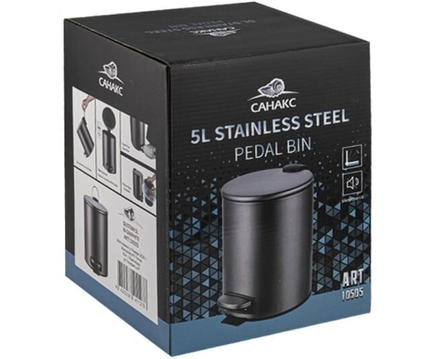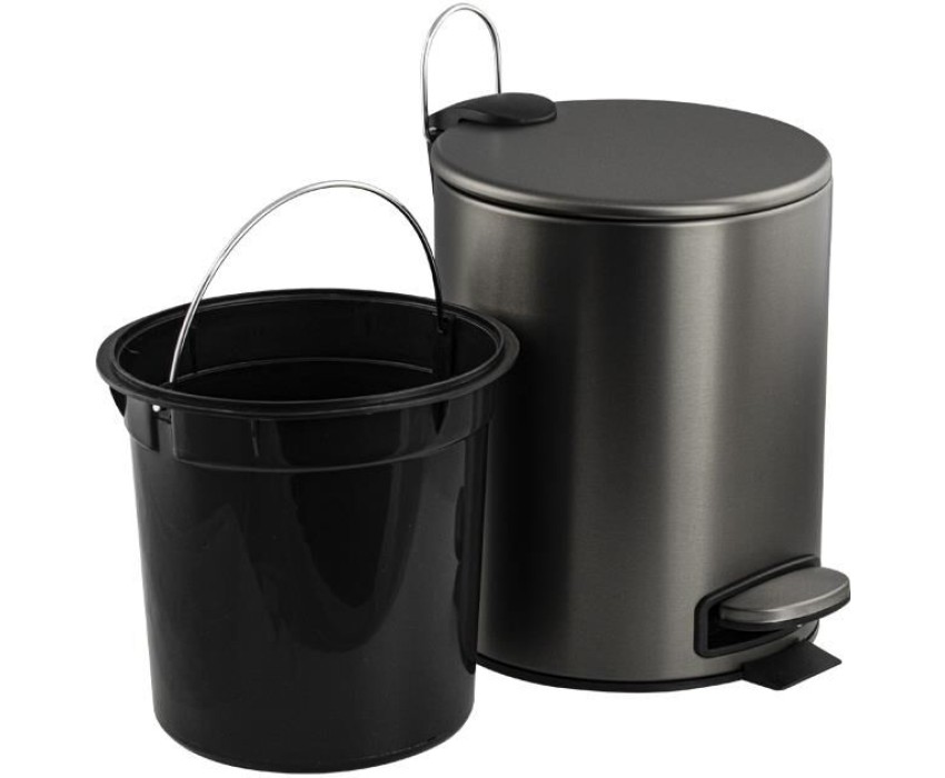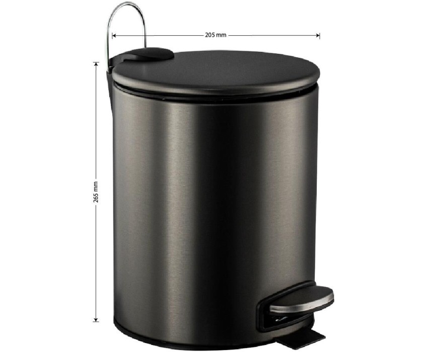 Ведро для мусора с педалью и откидной крышкой с функцией микролифт, прекрасно подойдет для ванной комнаты, туалета или кухни и офиса. Нержавеющая сталь SUS 410. Ведро оснащено пластиковым гигиеническим контейнером и плавным механизмом поднятия - опускание крышки, при помощи нажатия на педаль. Объём ведра 5 литров. Отличное решение для утилизации мелкого бытового мусора. Наличие крышки обеспечивает защиту от неприятных запахов и распространения бактерий, а педальная система открывания позволяет не прикасаться к баку руками. Благодаря современному дизайну ведро впишется в интерьер любой кухни и ванной комнаты. Преимущества ведра для мусора с педалью: удобно устанавливается и перемещается на любое место; изготовлено из устойчивой к коррозии нержавеющей стали с покрытием цвета графит; пользоваться изделием удобно и гигиенично благодаря педали в нижней части корпуса. Нескользящая пластиковая основа ведра предотвращает повреждение пола. Габаритные размеры: высота 265 мм, диаметр 205 мм. Вес - 0.9 кг, объём - 0,01355