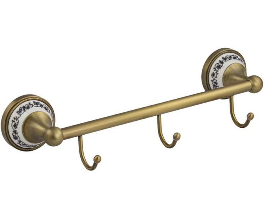 BRIMIX - Вешалка с тремя крючками, прямая, с керамической вставкой с орнаментом, цвет БРОНЗА. 94204