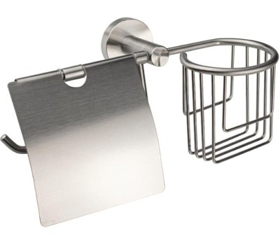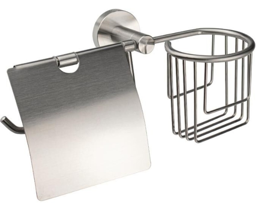Держатель освежителя воздуха и туалетной бумаги с крышкой, металлический, стильный и функциональный элемент санузла. Благодаря наличию крышки рулон будет защищен от попадания воды. Держатель легко и удобно крепится к стене при помощи фурнитуры входящей в комплект поставки. Изготовлен из прочной нержавеющей стали марки SUS 304 с матовым покрытием, которое придает безупречный стильный вид и долговечность. Удобно чистить и легко менять рулоны и аэрозоли. Габаритные размеры: ширина 260 мм, высота 140 мм, основание 50 мм, глубина 140 мм. Вес - 0,600 кг, объём - 0,00521 м3.