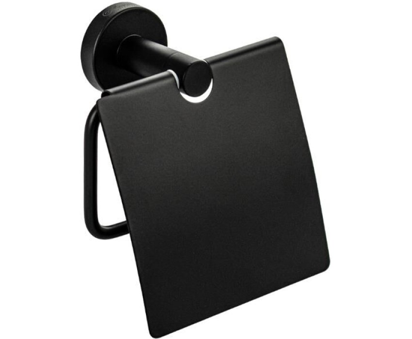 GFmark - Держатель туалетной бумаги с экраном, из нержавеющей стали, на круглом основании, цвет ЧЁРНЫЙ. 82003