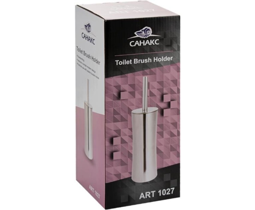 САНАКС - Ёрш для унитаза напольный, круглый, ПРЕМИУМ, с ИЗОГНУТЫМ ЁРШИКОМ, из нержавеющей полированной стали 201 1027