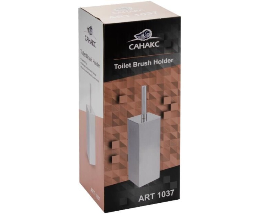 САНАКС - Ёрш для унитаза напольный, квадратный, ПРЕМИУМ, с ИЗОГНУТЫМ ЁРШИКОМ, из нержавеющей полированной стали 201 1037