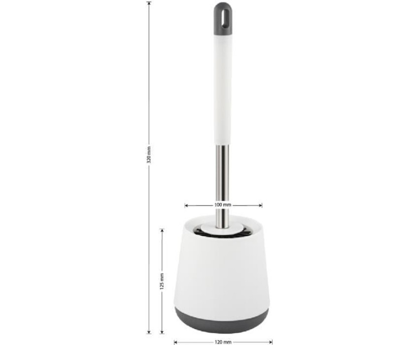 Ёрш для унитаза напольный белый, с силиконовой щёткой. Гармоничный дизайн и белая расцветка туалетного ершика отлично впишется в любой интерьер. Напольный аксессуар включает в себя силиконовый ерш для чистки и пластиковую подставку для ерша. Щётка для унитаза имеет силиконовую щетину, обладает высокой стойкостью к стиранию. Туалетный ерш выполнен из высокопрочного пластика АБС и предназначен для использования в помещениях с повышенной влажностью, он безопасен и не требуют специального ухода. Габаритные размеры: высота 320 мм, высота колбы 125 мм, диаметр основания 120 мм. Вес - 0,4 кг, объём - 0,00324 м3.
