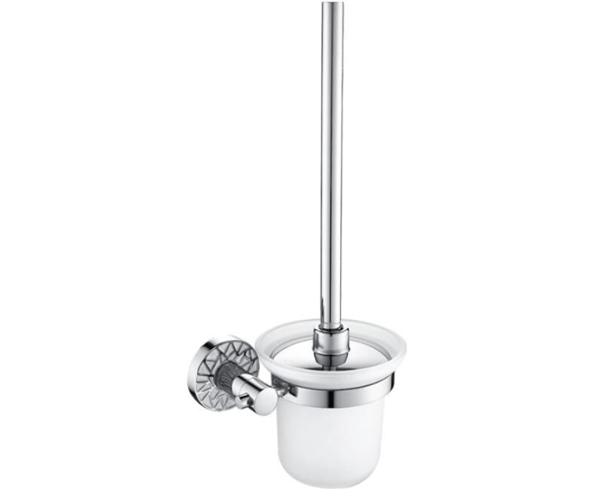 Ёршик со стеклянной матовой колбой, настенный, необходимый аксессуар любой туалетной комнаты. Приспособление обеспечит порядок и правильное хранение гигиенических принадлежностей. Изделие выполнено из стекла и металла с хромированным покрытием. Жесткая щетина ерша гарантирует отличный результат очистки санузлов. Такое сочетание материалов делает конструкцию прочной и долговечной. Держатель колбы легко и удобно крепится к стене при помощи фурнитуры входящей в комплект поставки. Материал изготовления — ЦАМ (цинк-алюминий-медь) + нержавеющая сталь. Имеет специальное хромированное покрытие, которое защищает изделие от влаги и придает ему блестящий внешний вид. Размеры: высота 350 мм, высота колбы 100 мм, диаметр колбы 115 мм, основание 55 мм. Вес - 0,900 кг, объём - 0,00700 м3.