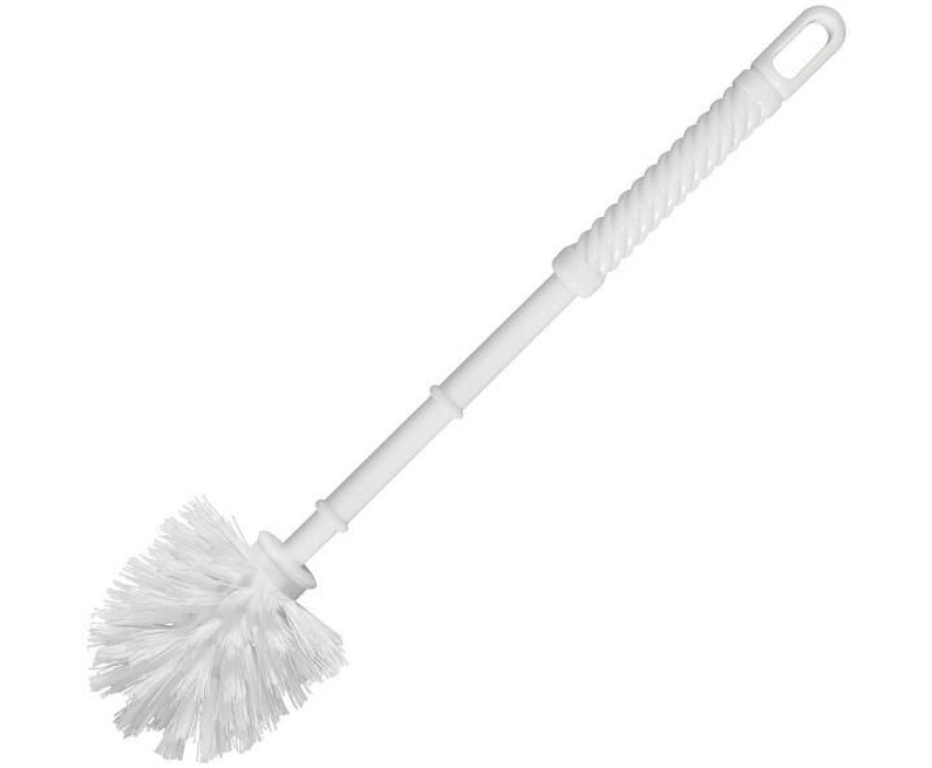 Ерш для унитаза имеет плотную, износостойкую щетину, которая позволяет отмывать загрязнения в труднодоступных местах унитаза (под ободком, зона крепления сиденья), не царапая ее. Ершик оснащен удобной ручкой, устойчив к бытовой химии, не боится влаги и легко моется. В ручке ершика имеется отверстие для подвешивания его на крючке для удобного хранения. После использования достаточно помыть ерш под струей проточной воды.Изготовлен из пластмассы. Размер 8х8х34,5 см.