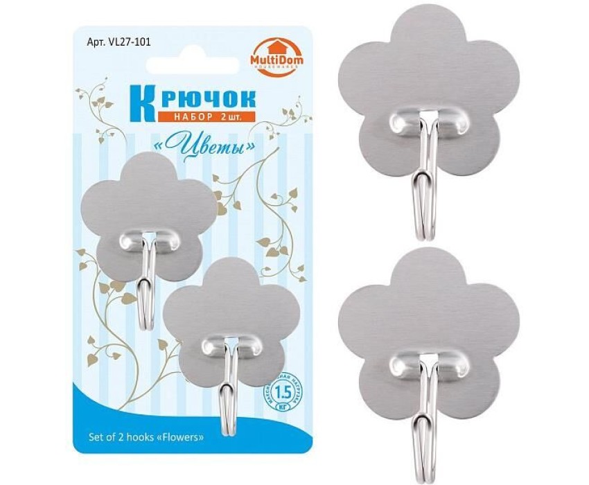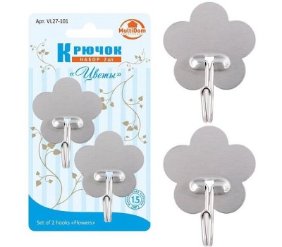 MULTIDOM Крючок "Цветы". Набор 2шт. Размер 6х4,5 см. VL27-101