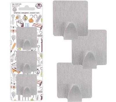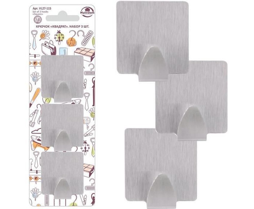 MULTIDOM Крючок "Квадрат". Набор 3шт. (мал). Размер 3,5х3,5 см. VL27-115