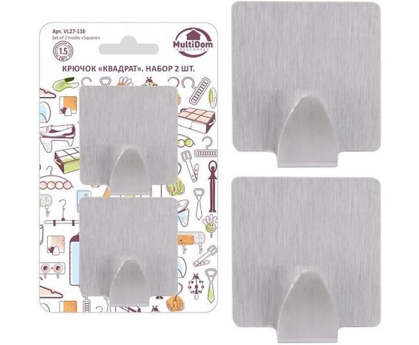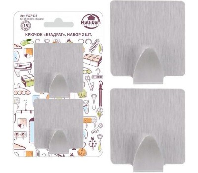 MULTIDOM Крючок "Квадрат". Набор 2шт. (бол). Размер 5х5 см. VL27-116