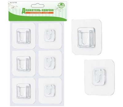 Держатель-крючок предназначен для крепления фотографий, картин, Wi-Fi роутеров, рамок, полок, органайзеров, пультов, принадлежностей для ванной и туалета, небольших горшков для комнатных растений. Держатель-крючок состоит из двух частей: одна часть клеится непосредственно на стену, вторая на предмет, который необходимо повесить. Вы легко сможете снять предмет со стены и также легко установить его обратно. С обратной стороны изделия расположена самоклеящаяся пленка, которая обеспечивает надежность крепления к любой гладкой поверхности (плитка, стекло, зеркало, ламинированные панели и т.п.). Не превышать максимальную нагрузку 3 кг. Изготовлено: держатель-крючок из пластмассы (полипропилен), клеевая основа из полимерного материала (поливинилхлорид). Размер: 6х6 см.
