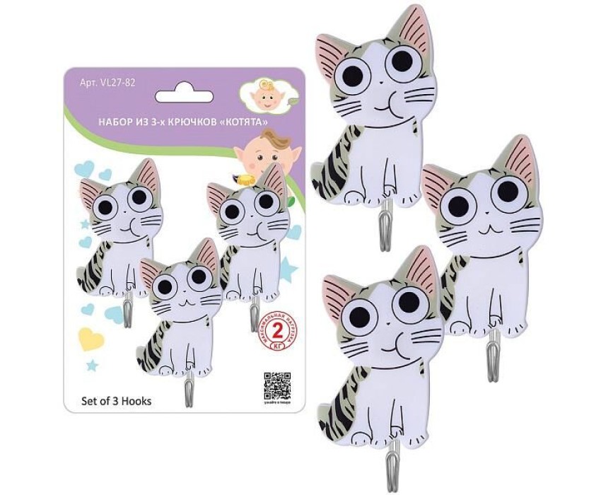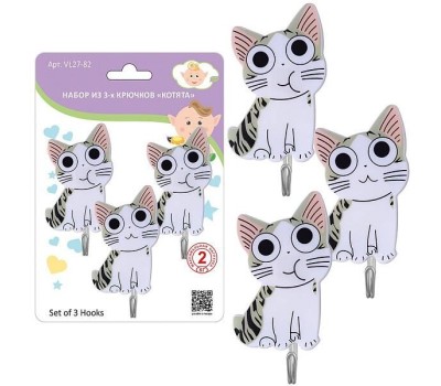 MULTIDOM Набор из 3-х крючков "Котята". Размер 7,5х2х3,5 см. VL27-82