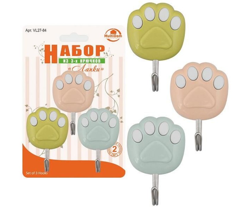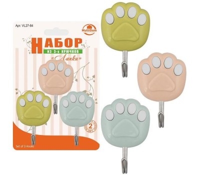 MULTIDOM Набор крючков "Лапки". 3 шт. Размер 4х5,5 см. VL27-84