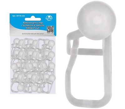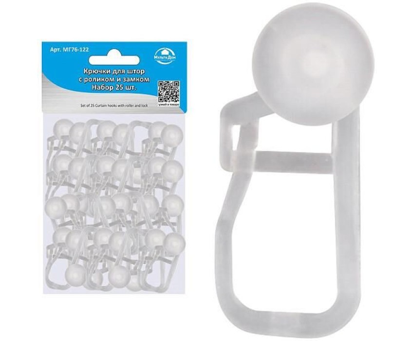 MULTIDOM Крючки для штор с роликом и замком. Набор 25шт. Длина 3 см. (только кратно упаковке) МГ76-122