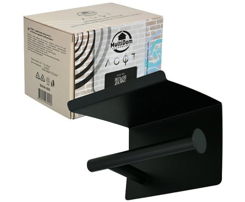 MULTIDOM Держатель настенный для туалетной бумаги с полкой "Лофт". Размер 14х10х10 см DA34-305