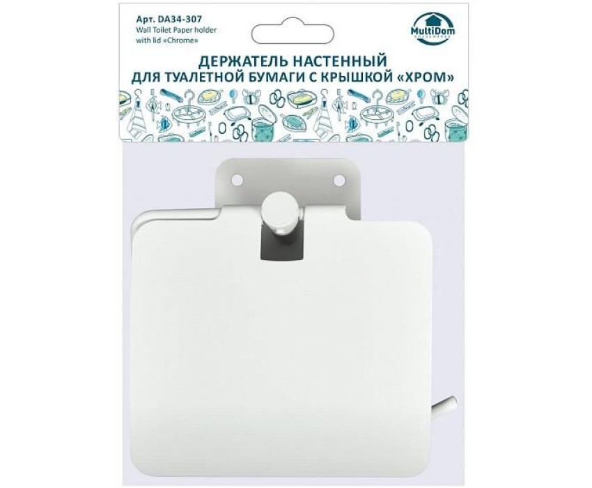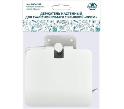 MULTIDOM Держатель настенный для туалетной бумаги с крышкой "Хром". Размер 13,5х13,5х4,5 см DA34-307