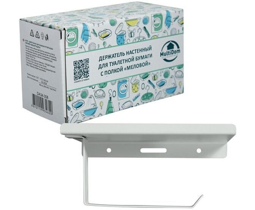 MULTIDOM Держатель настенный для туалетной бумаги с полкой "Меловой". Размер 18х10х8 см DA34-308