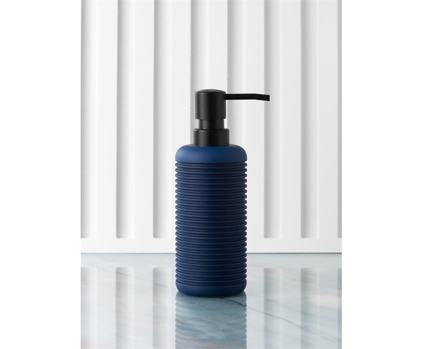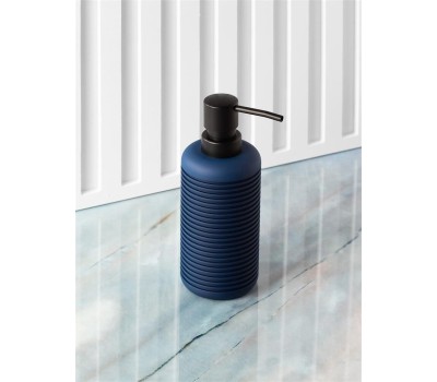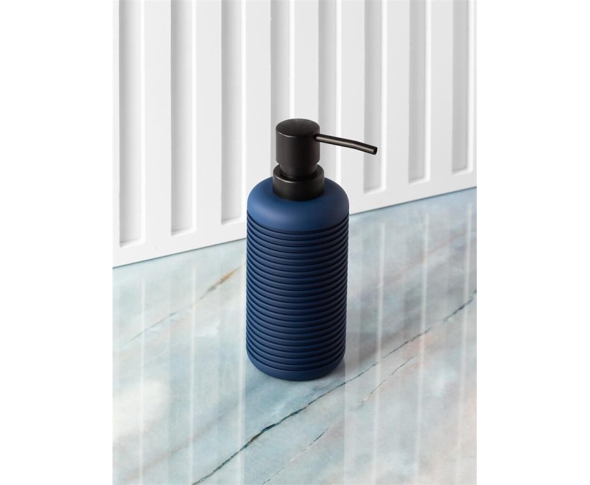 Диспенсер для жидкого мыла Материал: ABS-пластик прорезиненный Размер: 19 x d6,5 см Объём: 350 мл Цвет: темно-синий, черный